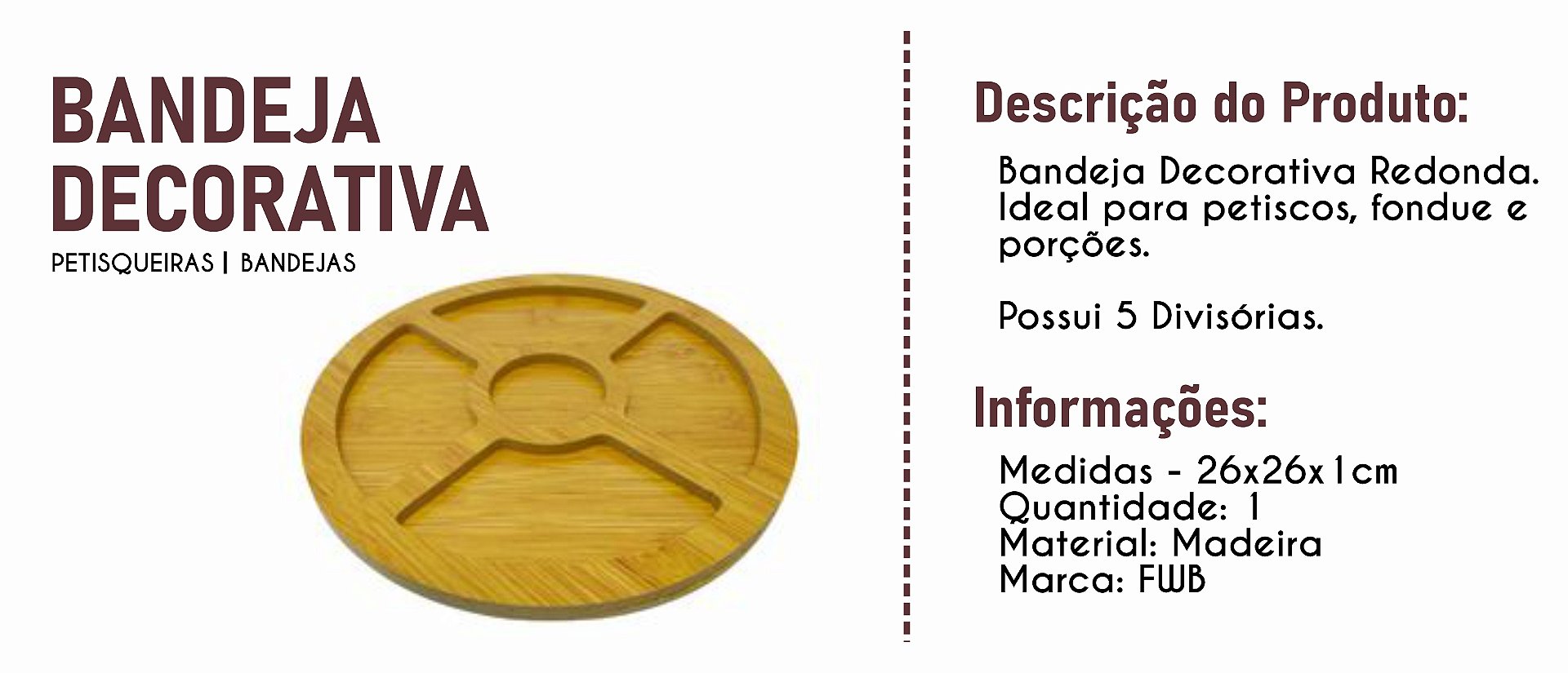 Bandeja Petisqueira Decorativa de Madeira - 5 Divisórias