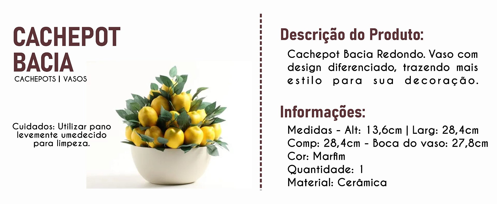 Cachepot Bacia Redondo Cerâmica Marfim Decoração 13,6x28,4 cm