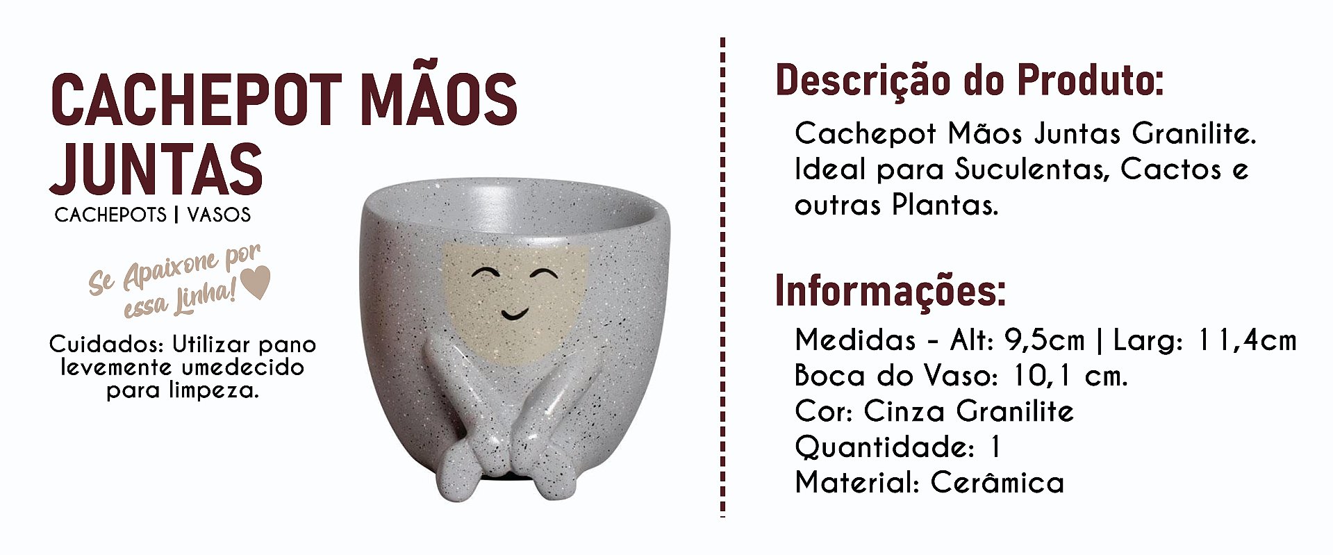 Cachepot Mãos Juntas Cinza Granilite de Cerâmica 9,5x11,4 cm