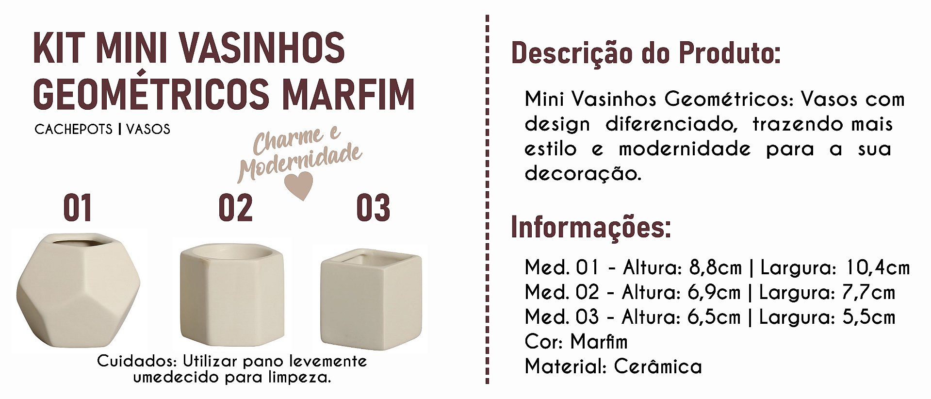 Kit Mini Vasinhos Geométricos Cerâmica Marfim