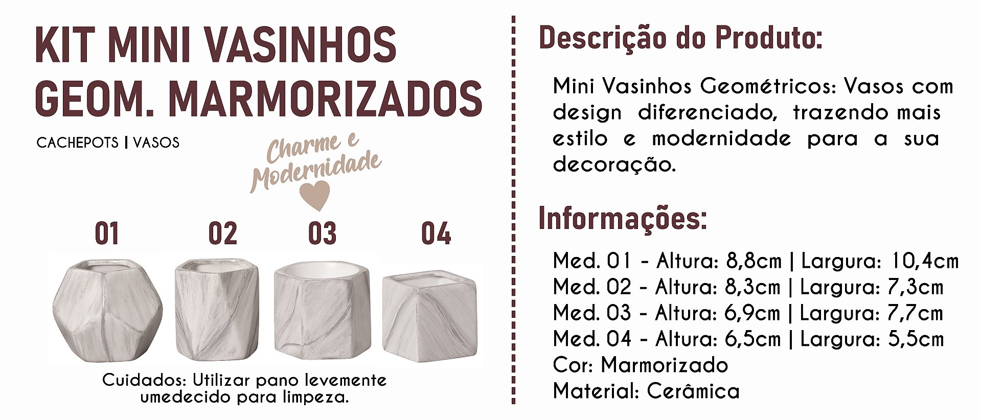 Kit Mini Vasinhos Geométricos Cerâmica Marmorizado