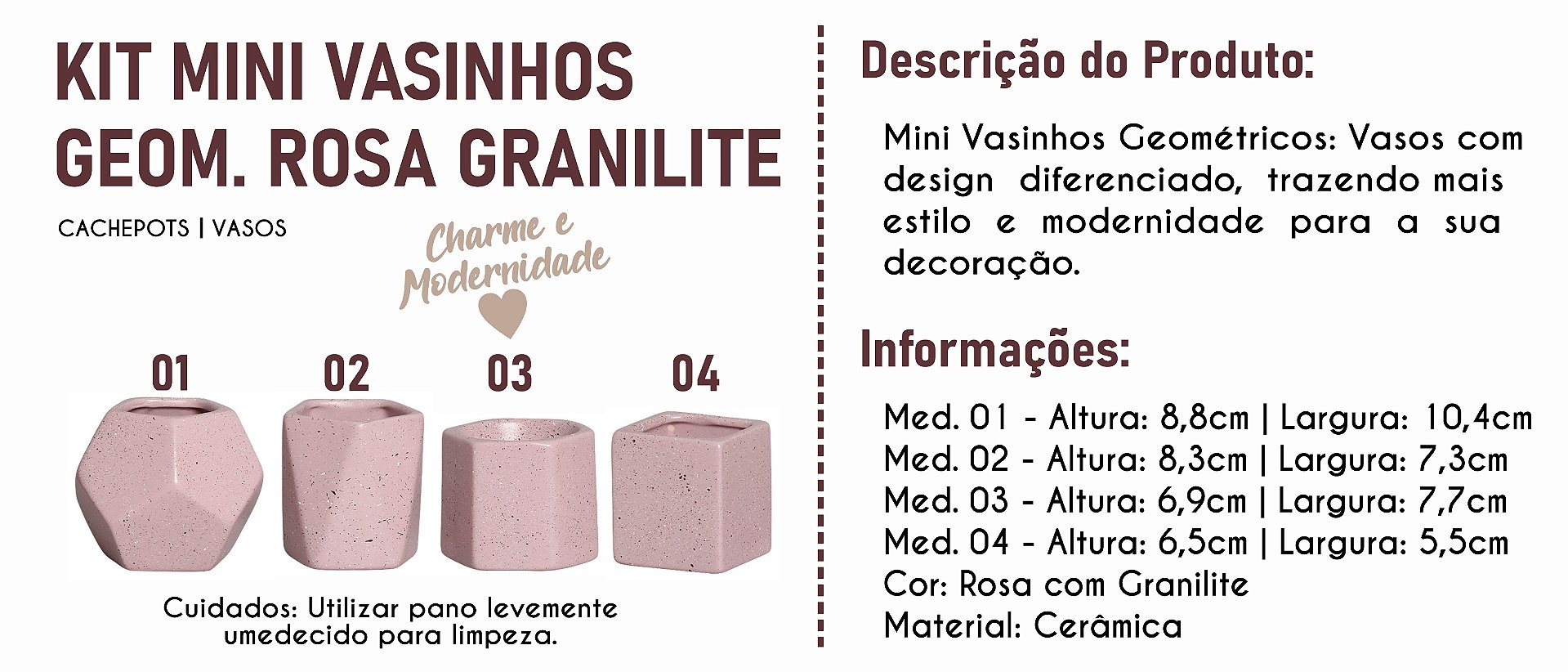 Kit Mini Vasinhos Geométricos Cerâmica Granilite Rosa